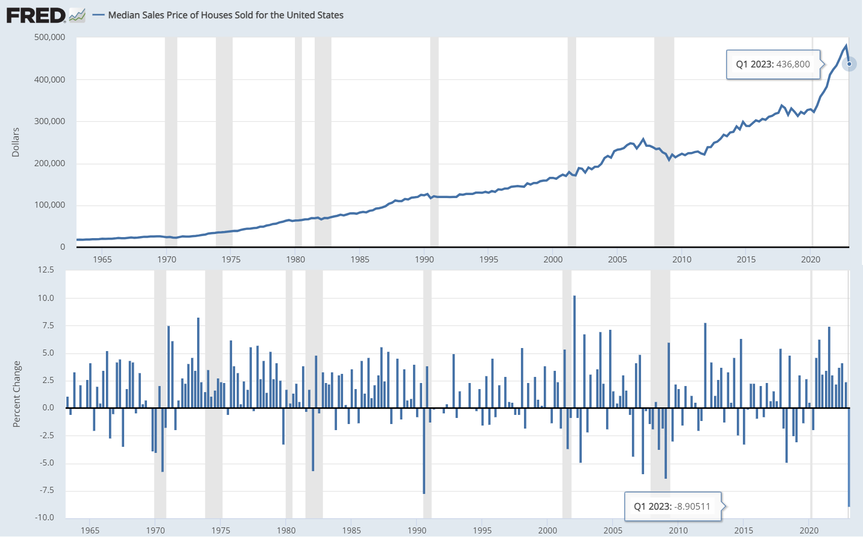 House selling prices have fallen to an unprecedented record low: -8.9% q/q in Q1/2023, the largest decline ever.