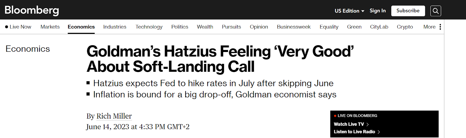 The Fed may still be relying on the strength of US consumer spending (70% of GDP) and the resilience of the labor market to predict a soft-landing by the end of this year. This is completely reasonable. However, the data the Fed is focusing on are somewhat more lagging than the changes in the market.