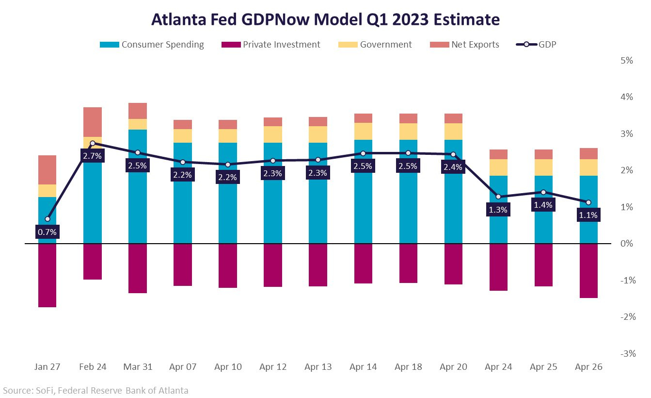 Recall: Q1/2023 GDP growth was still mainly driven by consumer strength. (Green column)