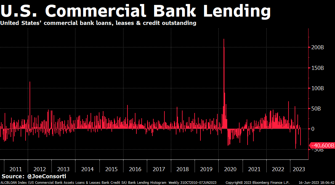 Last week, bank commercial loans fell -USD 40.6 billion, the second largest decline since the 2008 Financial Crisis.