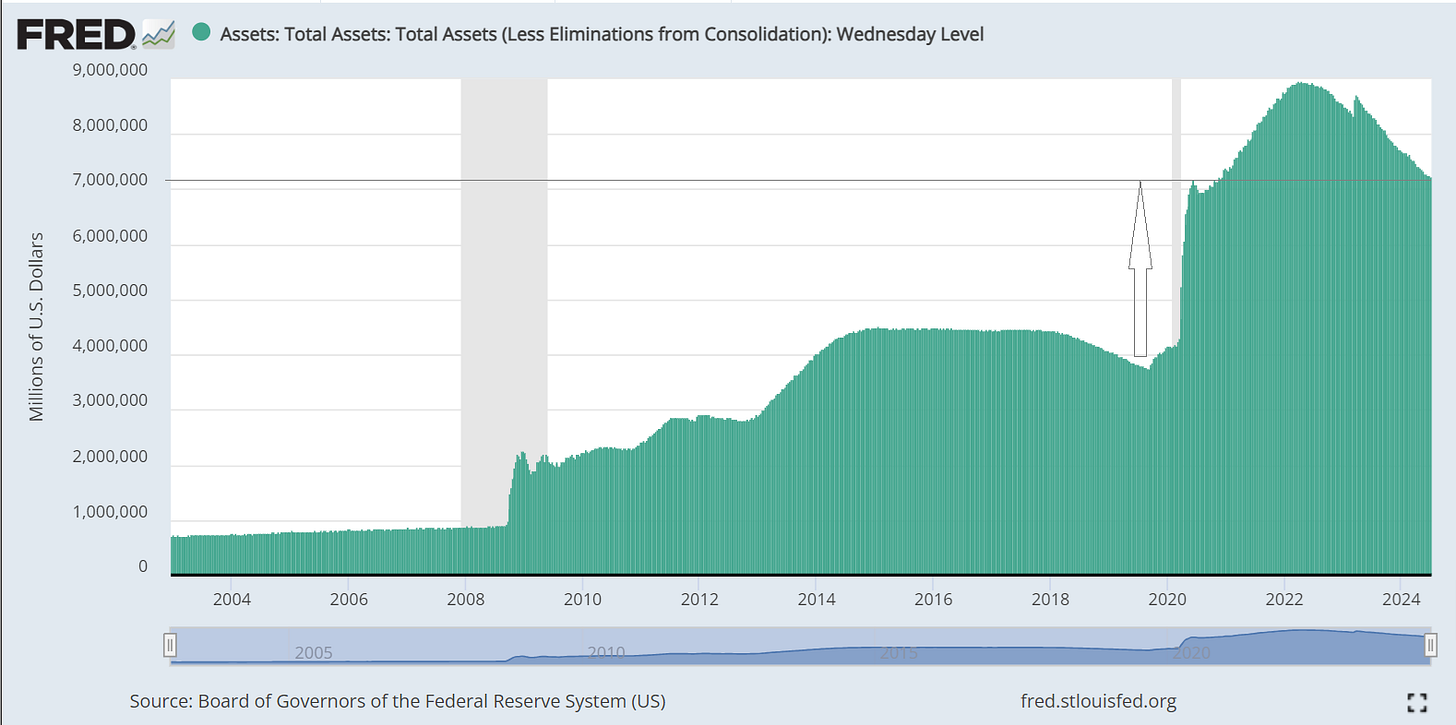 QT policy is still quite “superficial” as the Fed's balance sheet has shrunk but not back to pre-Covid levels.