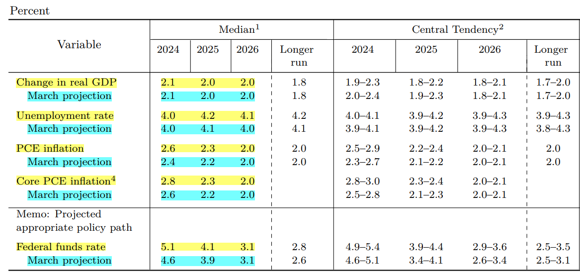 With the trio: PCE inflation (+2.6% y/y) + GDP growth (+1.4% Q1/2024) + unemployment rate (4.1%) developments outside the Fed's expectations in the June FOMC; very likely: