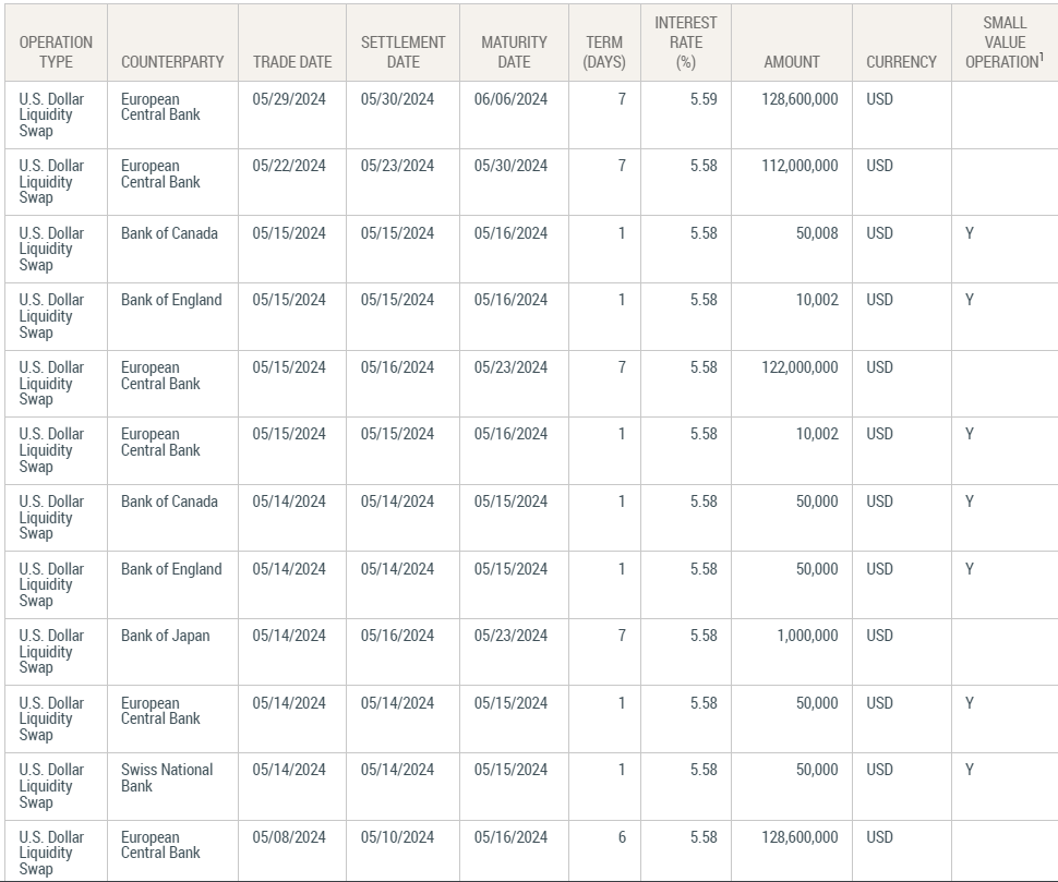 FYI: The Fed has conducted a series of large and small swap transactions with ECB, BOE, BOC, and BOJ this month as those regions are at risk of recession and under pressure from the rising USD.