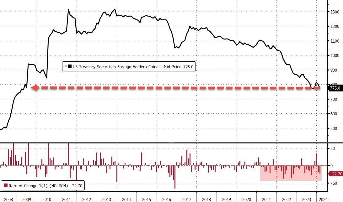 FYI: Over the past 9 out of 11 months, the amount of US Treasury bonds (US T-bond) held by Chinese investors has continuously declined: