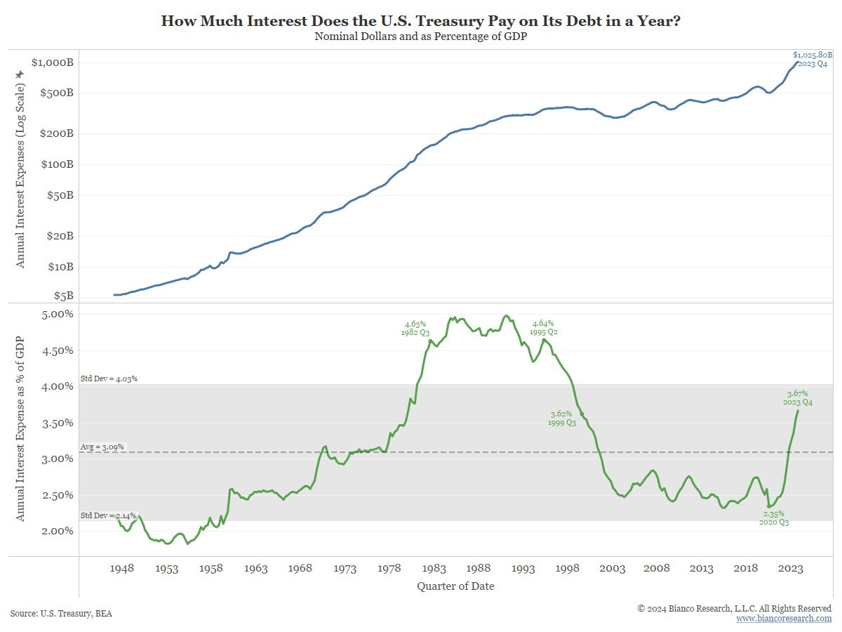 The Federal government's interest payment costs have reached 3.67% of the entire US GDP!