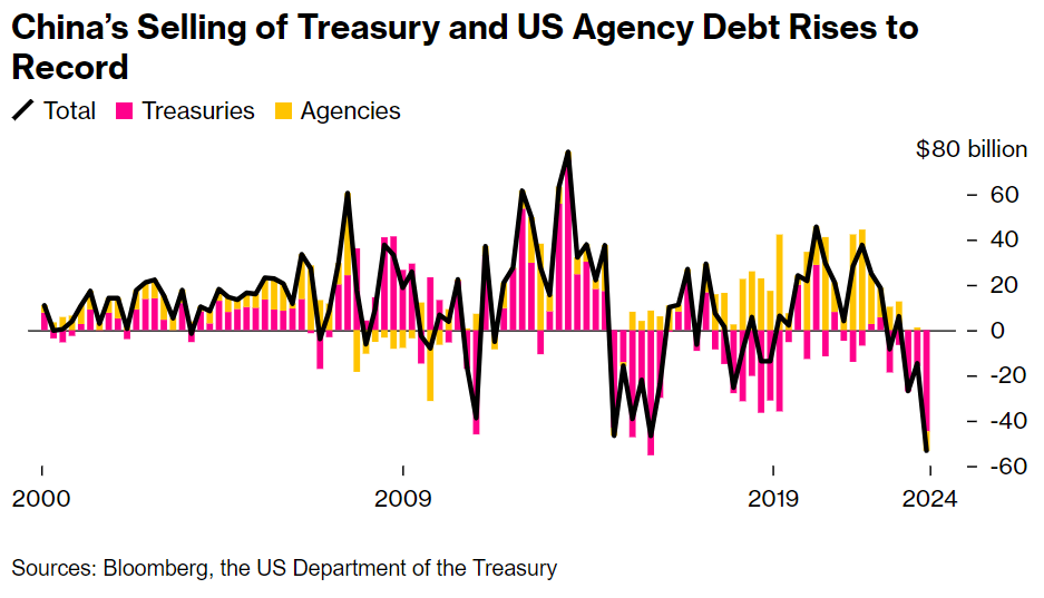 China sold a total of USD 53.3 billion US Treasury bonds in Q1/2024.