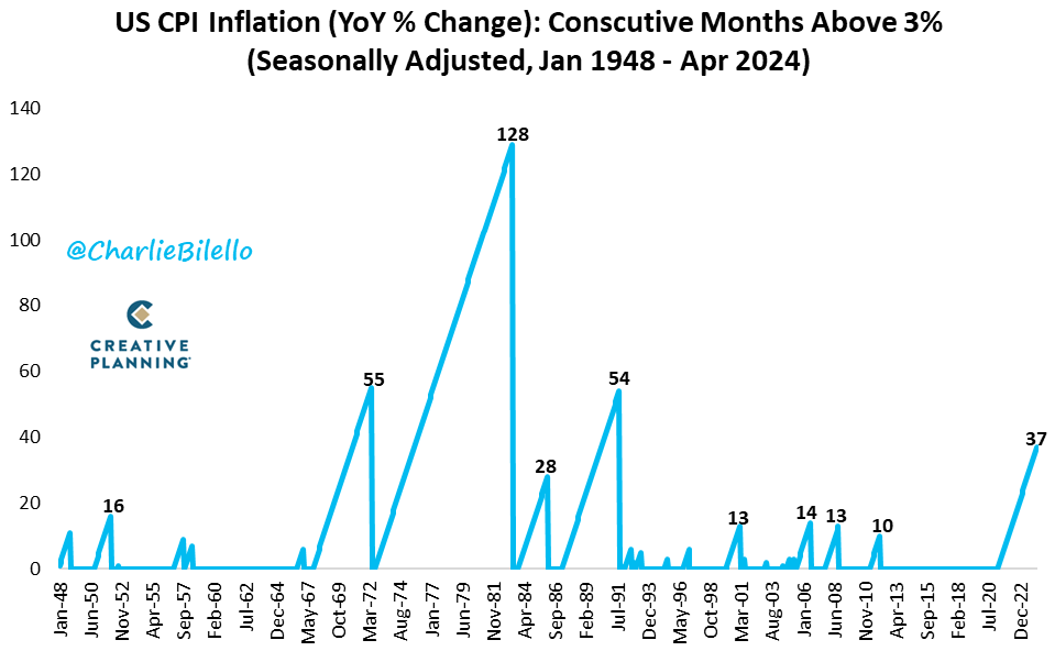 The US inflation rate has currently been above +3% y/y for 37 consecutive months – this is currently the longest inflation period since the late 1980s - early 1990s.