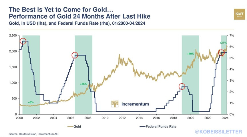 The use of gold as a safe-haven asset replacing USD-denominated assets has continuously increased over the 24 months since the Fed raised interest rates.