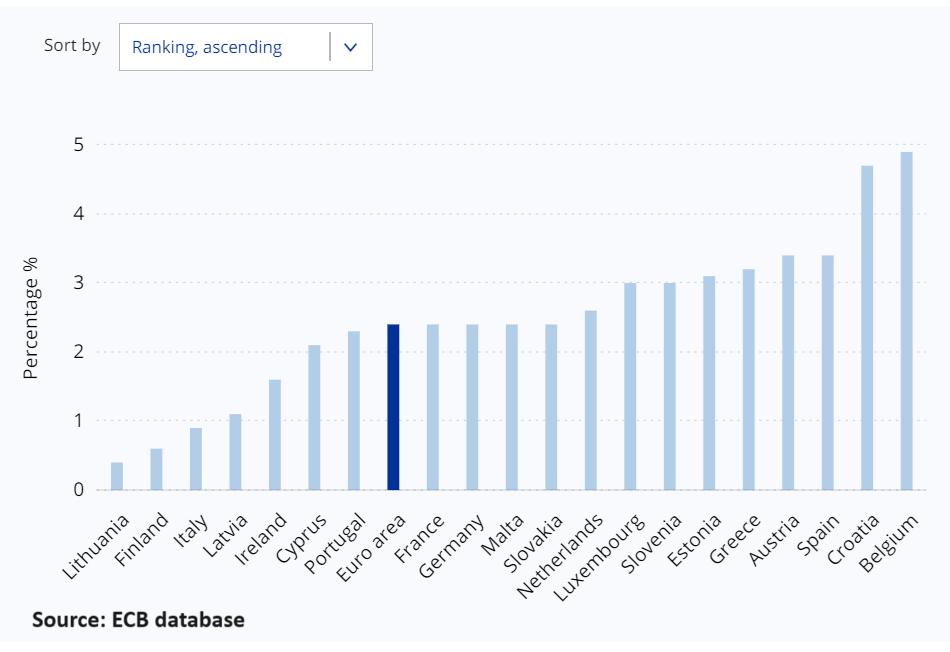 The Eurozone bloc initially had higher inflation than the US with heavy impact from supply shock, but currently, Eurozone inflation is only at 2.4% (core inflation 2.7%).