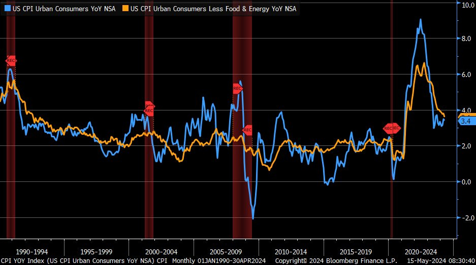 Last week, investors were all pleased when inflation (headline CPI growth) fell to +3.4% y/y as forecasted: