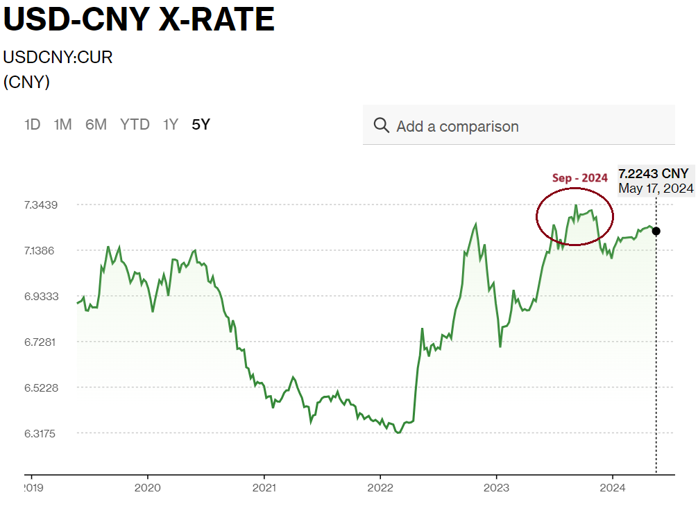 This is not only to protect the Yuan (as the Yuan clearly had weaker periods before - e.g. September 2023) but clearly intentional in the de-dollarization campaign.