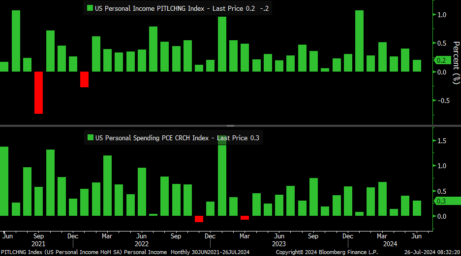 The May 2024 income growth figure was also revised down from +0.5% m/m to +0.4% m/m.
