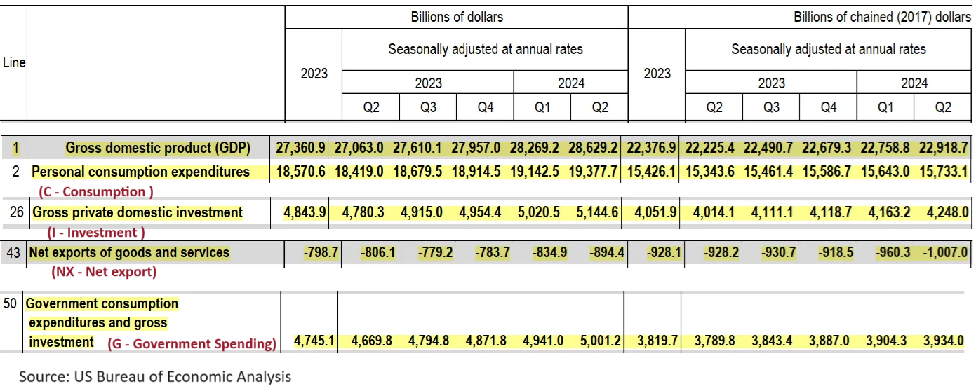 Below, Viet Hustler only wants to provide an overall view of the components that make up US economic growth in the Q2/2024 GDP report.