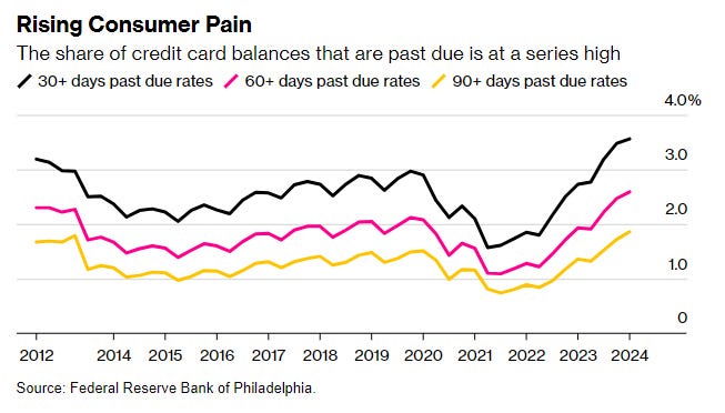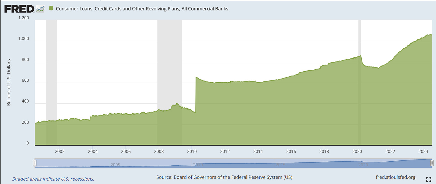 Consumer credit debt remains at an all-time high (accelerating since late 2022):