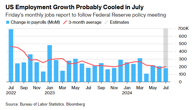 Bloomberg forecasts that payroll growth in July will continue to slow: