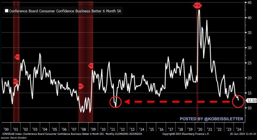 Only 12.5% of US consumers expect the business environment to improve in the next 6 months – according to the Conference Board survey.