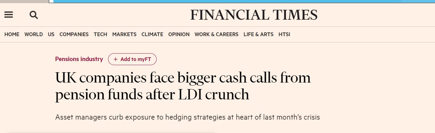 Accompanying the Gilt Crash was the margin call crisis for UK pension funds, which Viet Hustler explained in the article: