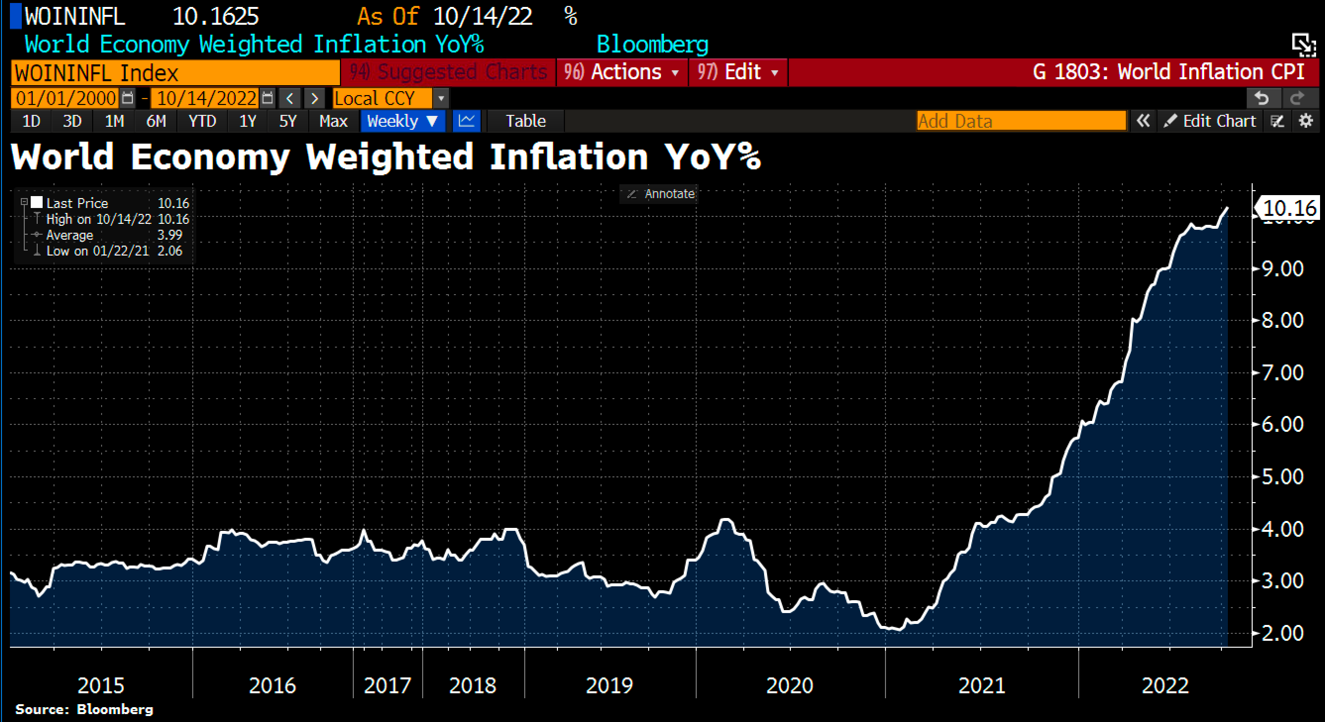 World average inflation has risen to 10.2%, the first double-digit increase since this data was tracked.