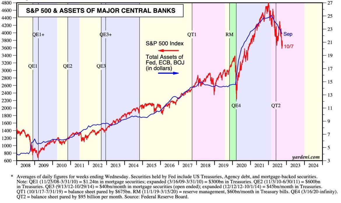 This is also reflected in the correlation between the stock market and the shrinkage of balance sheets of major central banks at the current time.