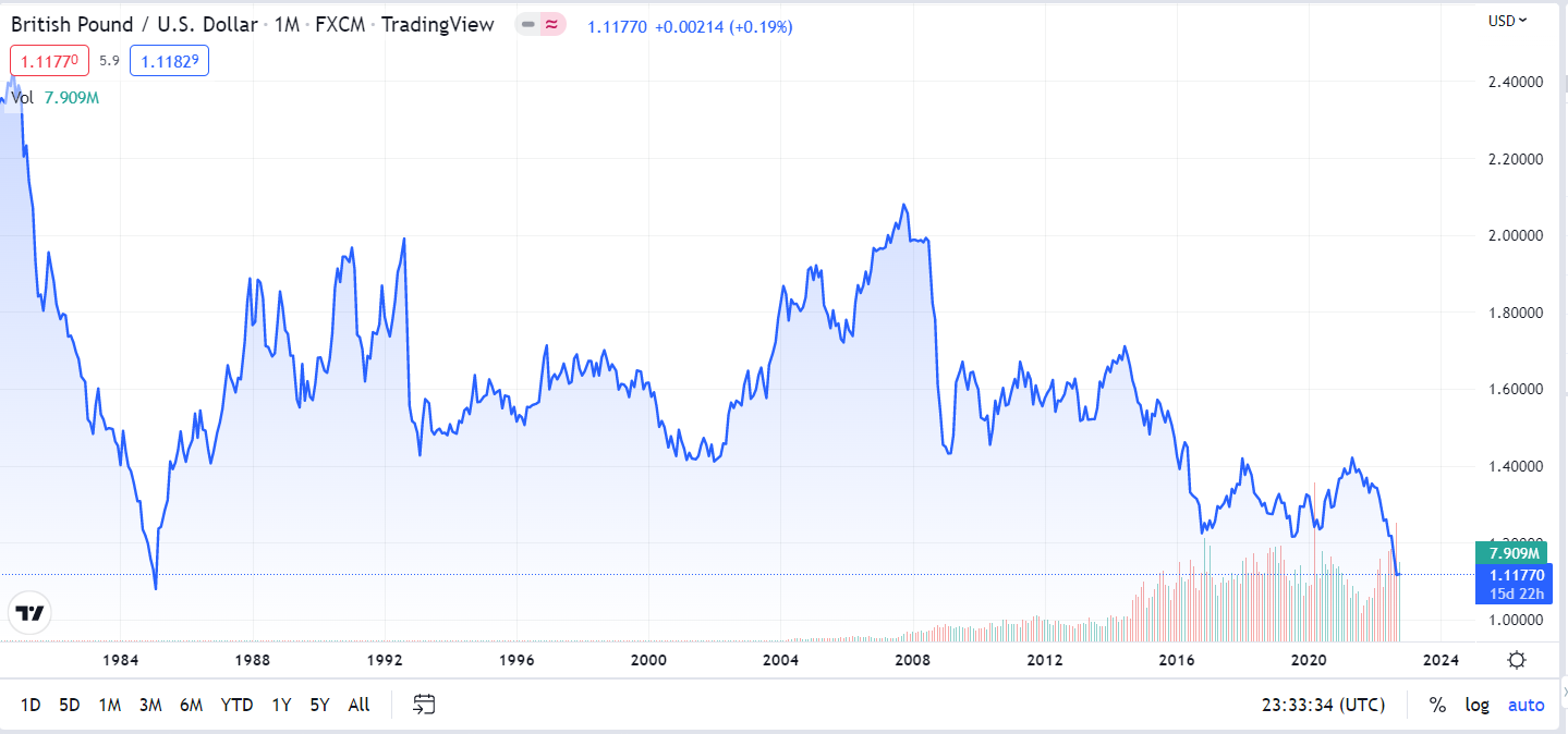 The British pound plunged against the US dollar on 09/23 (-3.5%), reaching the lowest level since 1985.