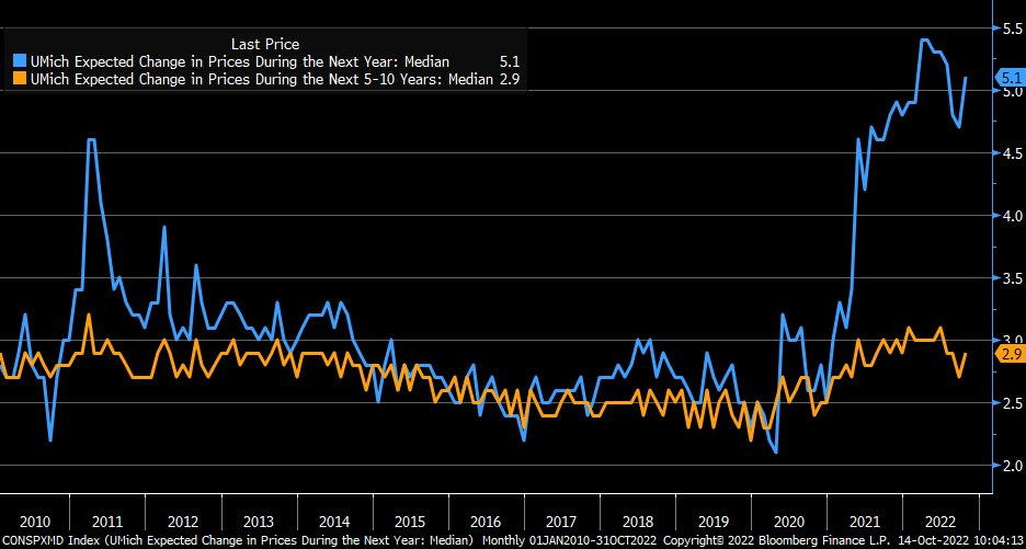 1-year and 5-10 year inflation expectations both increased in October per University of Michigan survey.