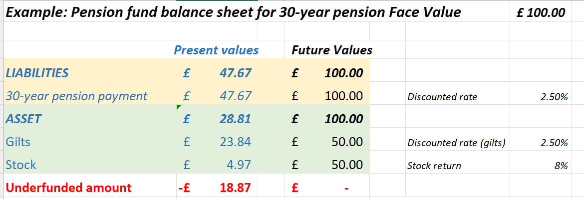 Therefore, these pension funds always face the problem underfunded liabilities (when the value of liabilities is greater than the assets at present value on the balance sheet).