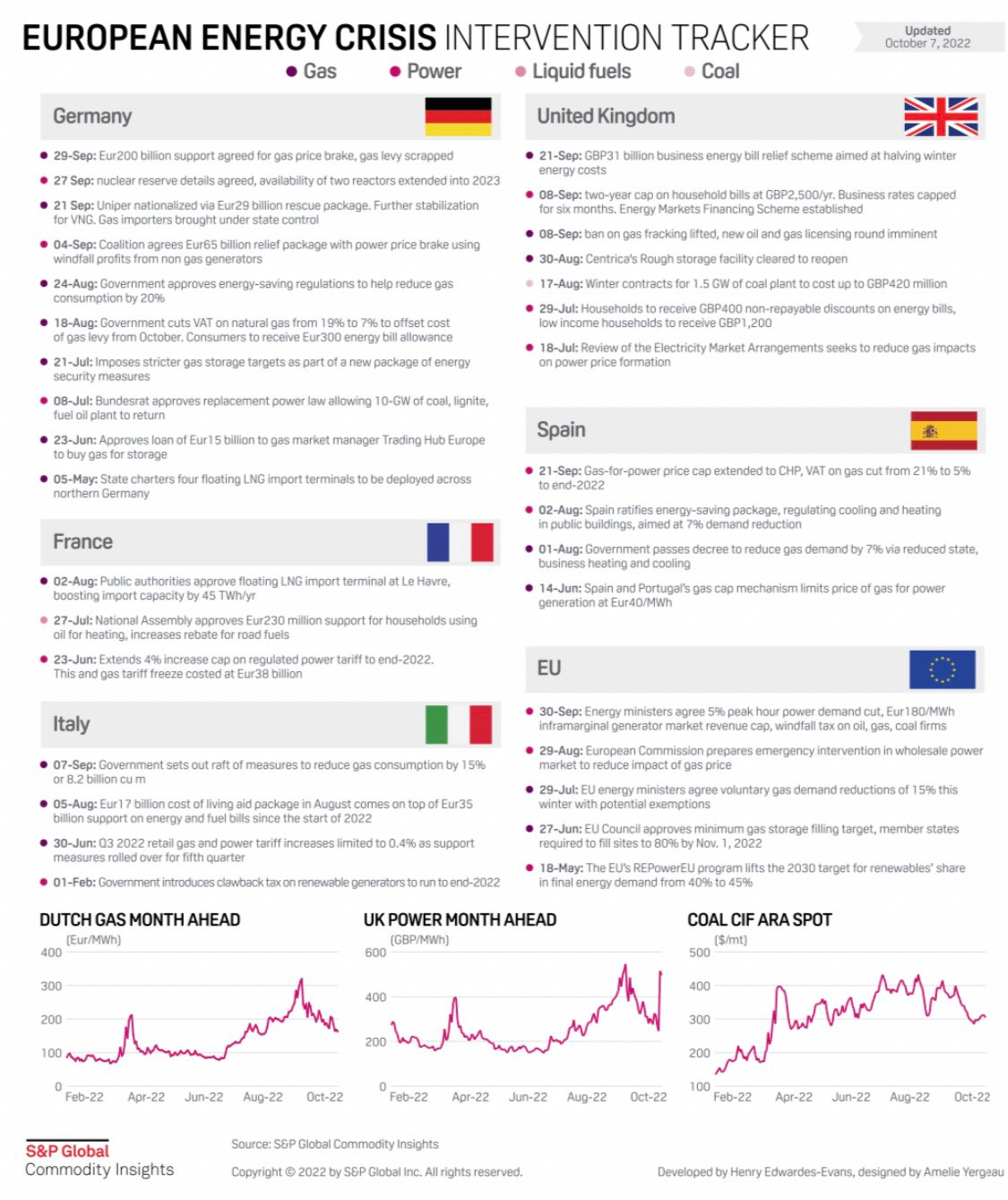 In Europe, governments have introduced early policies to stabilize energy prices (though unlikely to be effective amid current supply cuts).