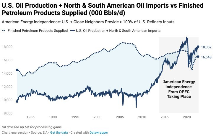 (Previously, in the 1970s, the United States imported 70% of its oil and 85% of crude oil from OPEC)
