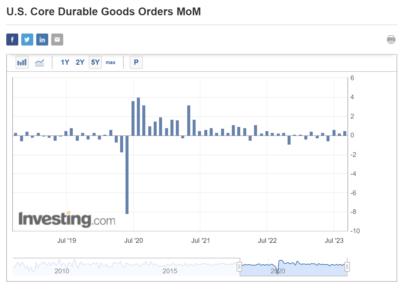 Core durable goods orders rose slightly +0.5% (higher than expected +0.2%).