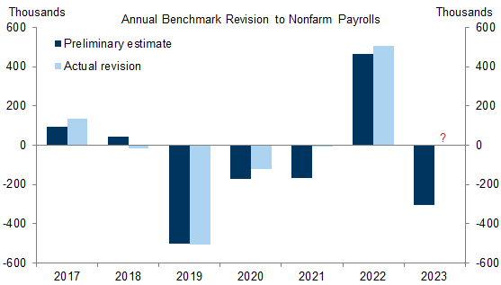 Payroll employment may be revised down -306,000. This downward revision is smaller than some economists' predictions.