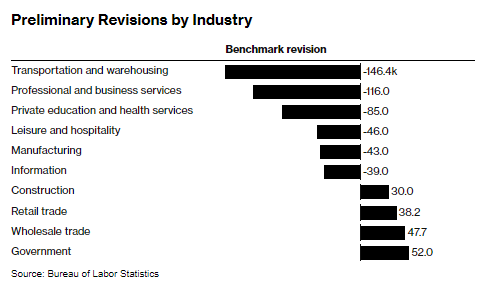 Transportation and warehousing as well as professional and business services had the largest downward adjustments. Payrolls in wholesale and retail trade estimated to be revised upward.