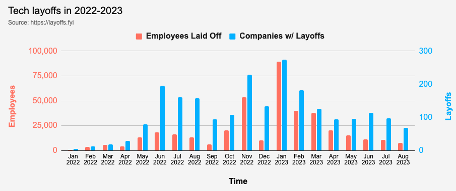 In tech sector alone, 965 companies have laid off 231,450 employees this year.