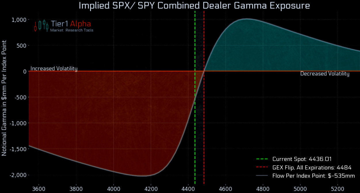 Market opened trading session 08/24 in a fairly over-extended zone after yesterday's strong rally, pushing mega-cap tech almost straight through key gamma levels at SPX~4400 and QQQ~370 right before NVDA ER. NVDA's surprise revenue and earnings growth report boosted the market after hours and in last night's futures session, helping almost the entire tech sector open gap up early morning before selling pressure across the board pushed QQQ to break support continuously in the first 2 hours.