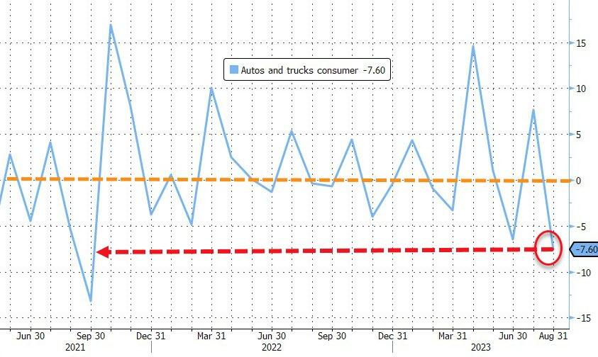 In August, auto production output fell significantly to -7.6% year-over-year.