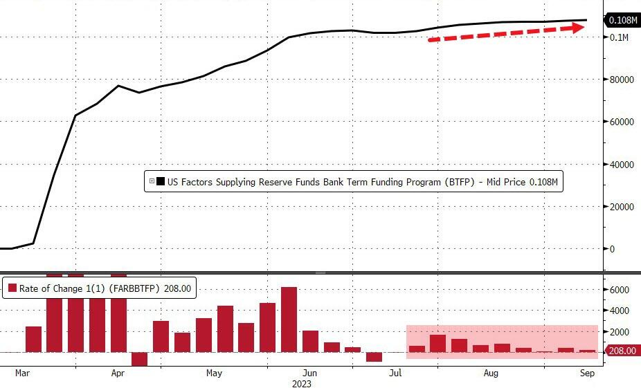 Fed's emergency bank relief continues to rise reaching 108 billion USD.