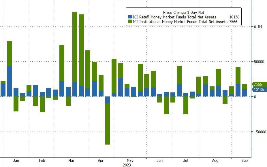 Once again, inflows mainly came from retail money market funds. Institutional funds also increased for 3 consecutive weeks.
