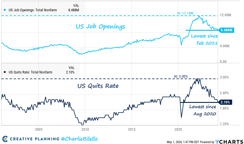 Number of new job postings lowest since 02/2021 + quit rate lowest since August 2020.