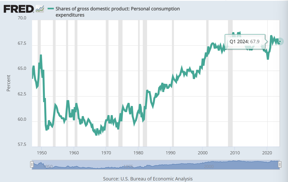 Viet Hustler always emphasizes: Consumer spending accounts for ~67.9% of US GDP.