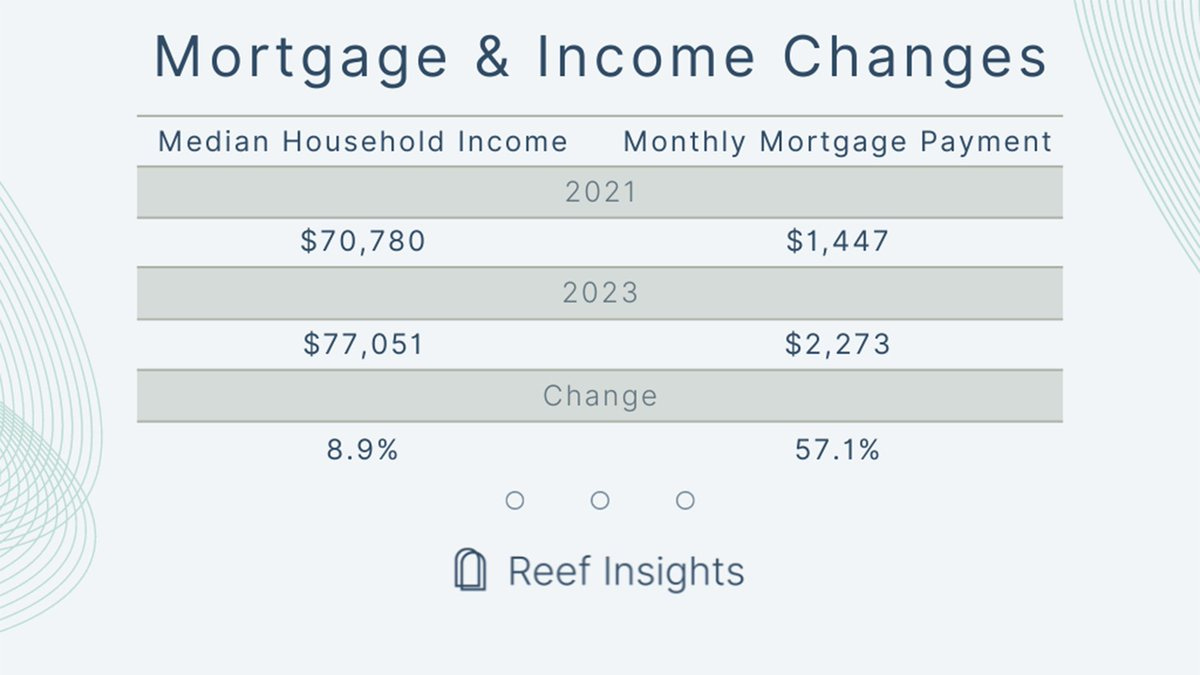 Mortgage interest rate growth is >6 times wage growth in 2 years 2021-2023: