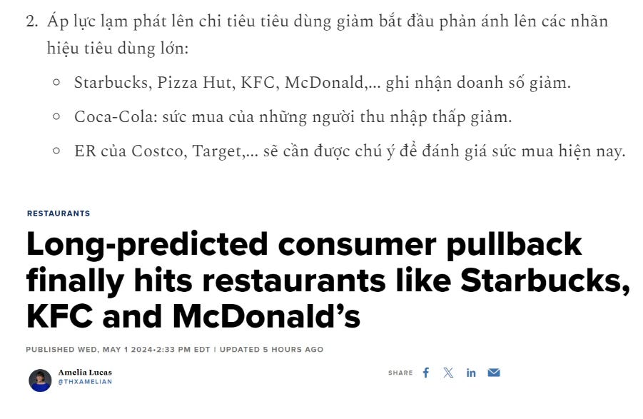 And recently, McDonald is also having to reconsider the USD 5 meal program (like during the 2008 economic crisis) due to the “poverty” situation of the customer segment it serves: