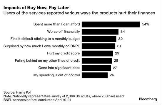 54% of Harris Poll survey participants said they spent more than they could afford due to the “Buy now pay later” program at that time.