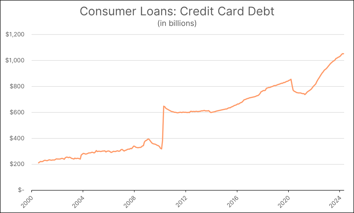 Just US household credit card debt alone has reached >USD 1 trillion in April 2024, up +7.6% Y/Y
