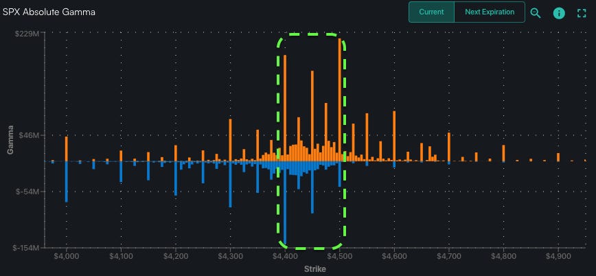Market enters morning trading session with fairly cautious sentiment as all 3 major indices retreated -0.55% overnight, especially after macroeconomic data from Europe showing clear deflationary pressure with industrial activity falling into “contraction” state. SPX continues to maintain resistance at 4500 and main support at 4400. Above 4400, SPX maintains positive gamma environment with bullish bias up to 4500 and below 4400, SPX is considered to show “risk-off” signs.