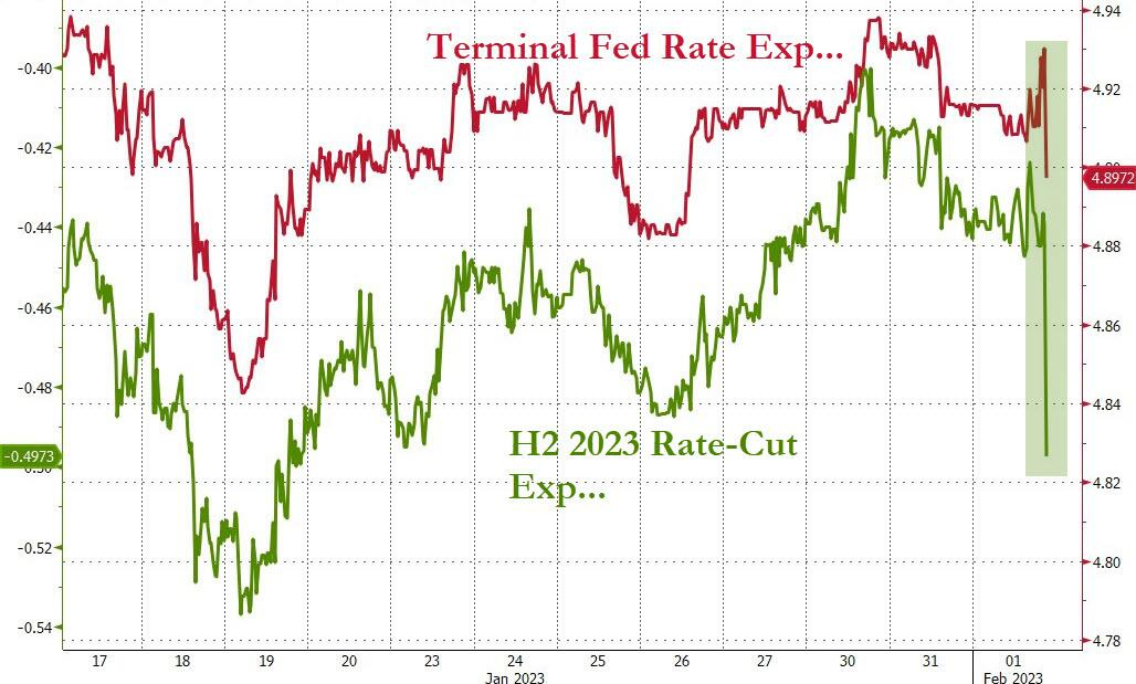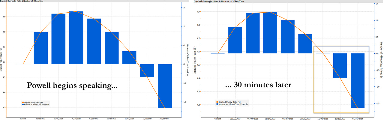 Immediately after Powell finished his speech, the market priced in an additional 0.5% rate cut for the second half of 2023 compared to before the speech: