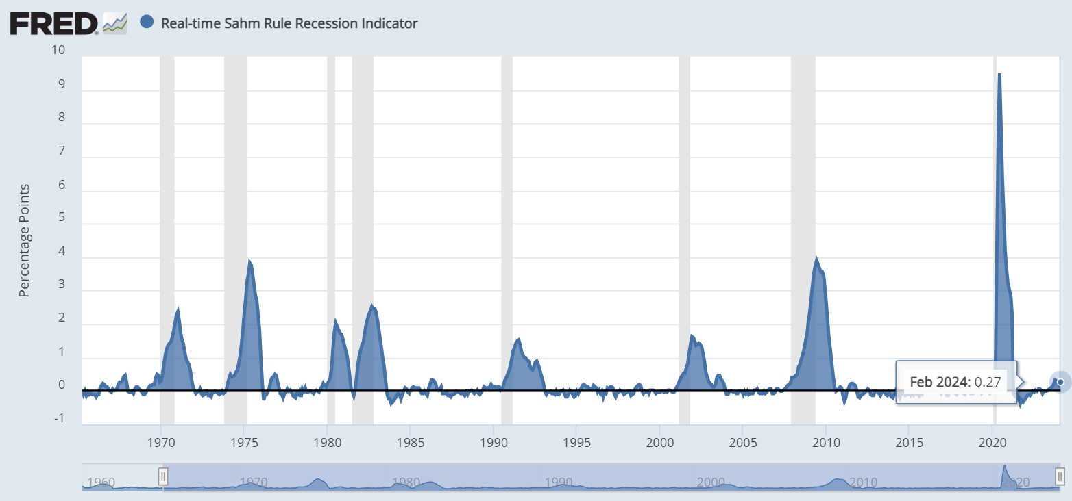 … when the labor recession indicator Sahm Rules dropped back to 0.27 (alarm level is +0.5%).