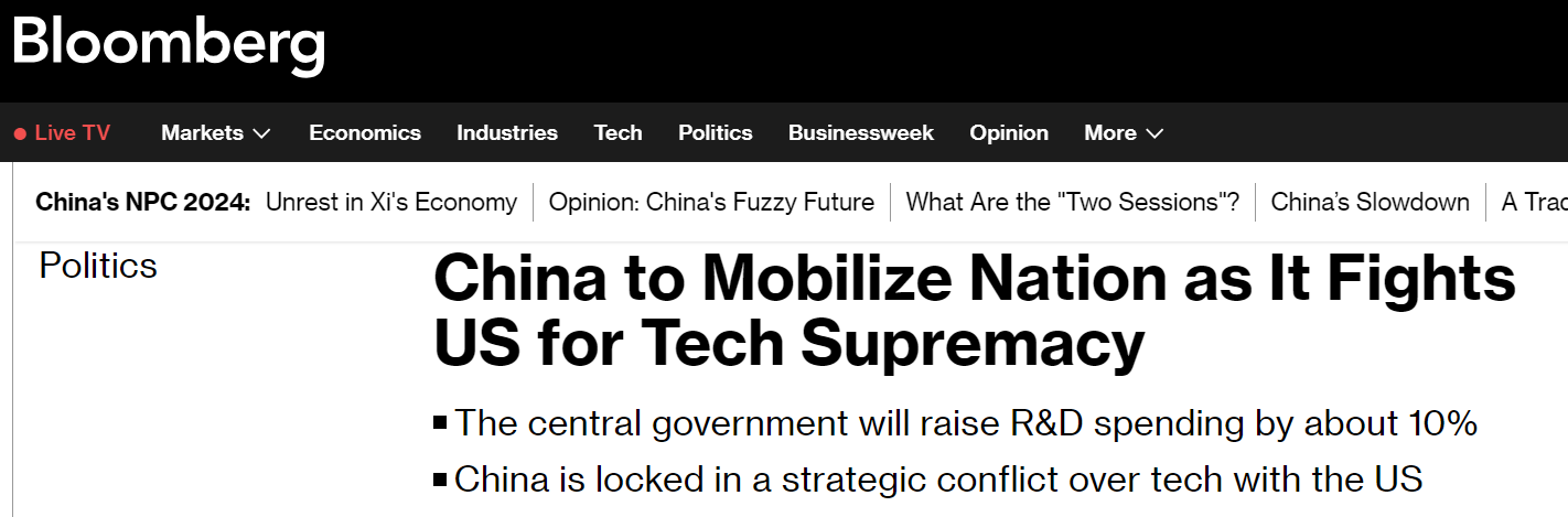 China will increase spending on scientific research and technology by an additional +10% in 2024.