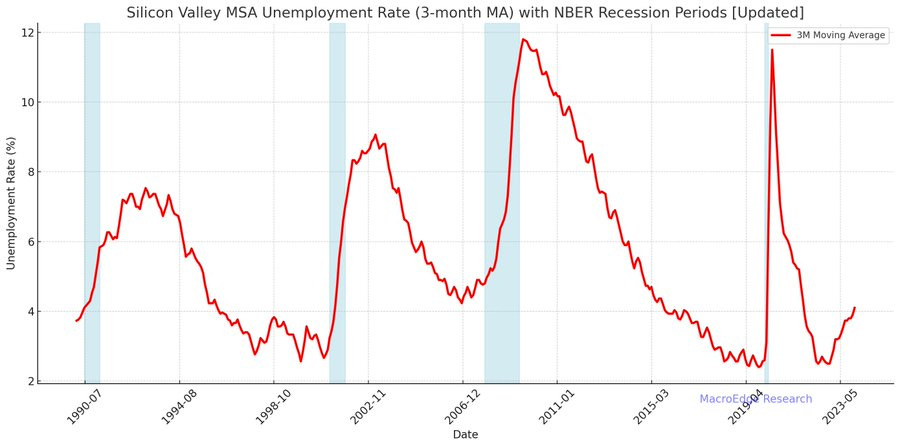Notably, the unemployment rate (latest 3-month average - 3MA) in Silicon Valley has risen significantly ~ the tech sector layoff trend continues.