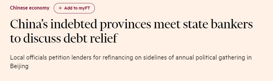 Alongside the superficial Two Sessions meeting, last week China was still gradually addressing its own issues: local government debt issues!