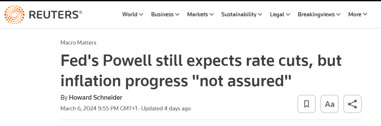 Especially as the Fed head - chair J.Powell in last week's testimony consistently expressed an inclination towards still cutting rates in 2024.
