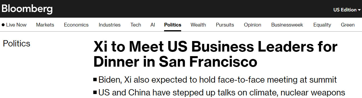 Upcoming, Chinese President Xi Jinping will meet President Biden and hundreds of CEOs from major US companies — an important sideline event at the APEC summit (San Francisco).